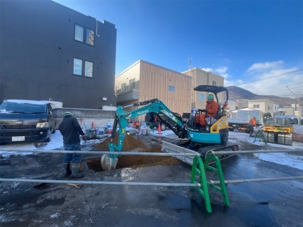 ロードヒーティング工事 Posted on 2025/11/27 現場から、ロードヒーティングの工事の様子が届きました。 ロードヒーティングの下はこんな感じになっているんですね!! あまり見ることがないのでお勉強になりますm(__)m 続いてこちらの写真は、同じ現場で取付管布設の為に掘削している様子です。 取付管とは何なのでしょうか? 今度現場担当者さんに会ったら聞いてみよう(^^) この日は雪が積もっていますね 寒そう、、、(◎_◎;) 寒い中お疲れさまでした!!!!!