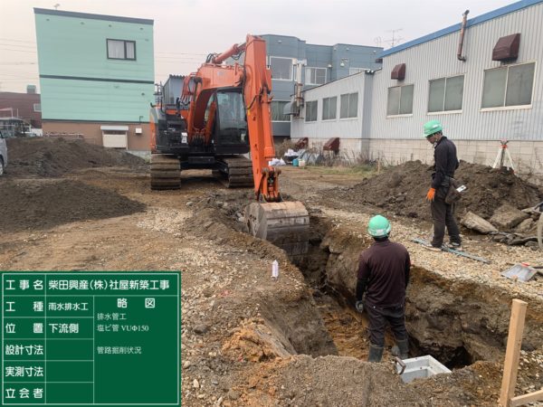 雨水排水 Posted on 2025/12/03 こちらは、雨水がちゃんと下水に流れていくように、管を設置する工事の様子です。 会社や家を新しく建てるというと、地面の上に建つ建物の事ばかり想像しがちですよね(◎-◎) 今回のように、雨水の管の設置もそうですが生活排水やガス管等色々なものが地面には埋まっているので様々な業者の方が関わっているんですね!
