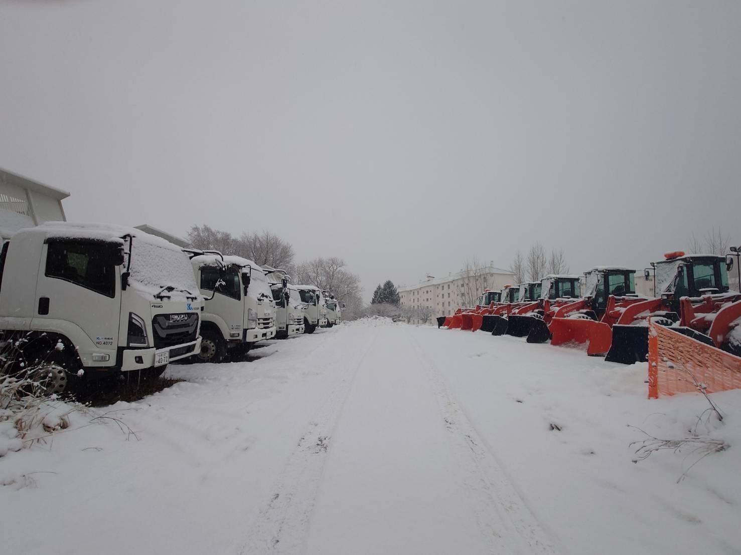 毎年、農試公園横に開設する三喜工業の除雪センター