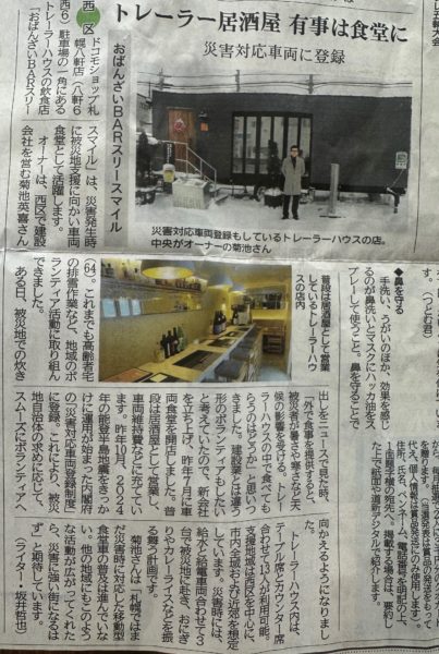災害対応登録車両に登録されたと、北海道新聞に取り上げられました。