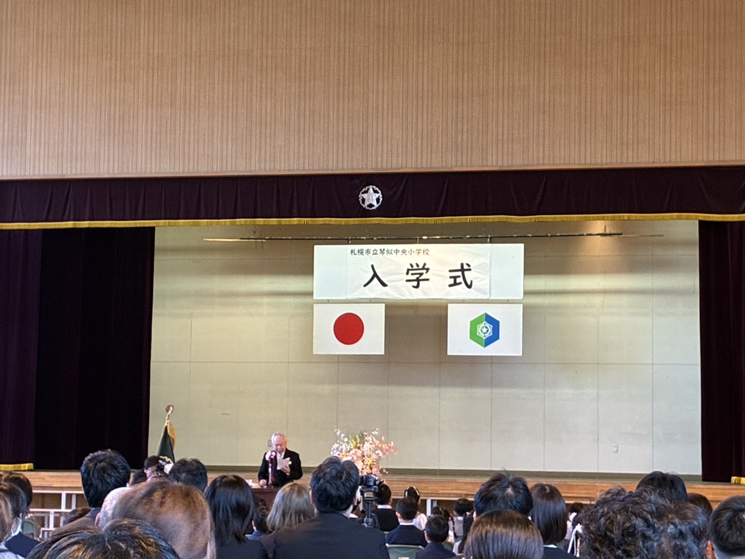 卒業式と入学式 Posted on 2026/04/10 琴似中央小学校の卒業式と入学式に、八軒商店会会長来賓として参加させていただきました。 ※写真を撮ってる位置は来賓席ではありません 卒業生の写真は投稿できないのでありませんが、みなさんすごく大人っぽくて、びっくりしました! みんな着物?袴?を着ていて、先生だか小学生だかわからないくらいの子もいました! 入学式も、校長先生のお話で、最後にみんなでじゃんけんしたり、楽しい入学式でしたよ!